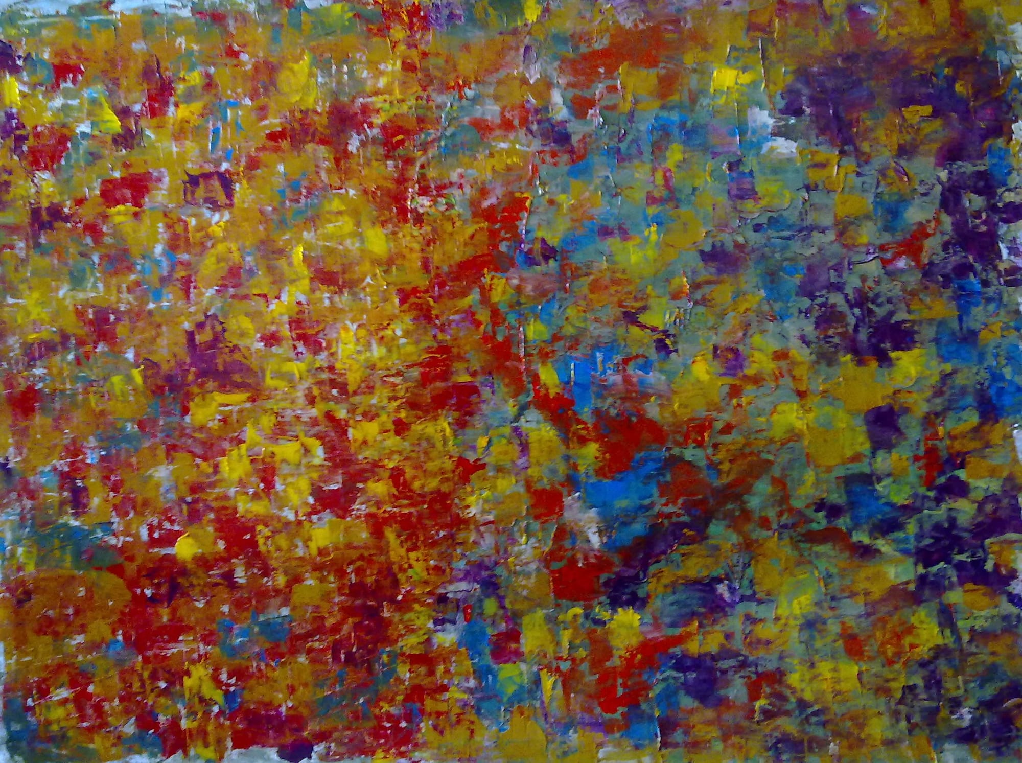 A vibrant field of color where warm reds and yellows meet cooler blues. Built through layered gestures, the work carries both energy and balance. Carefully shipped rolled to ensure safe international delivery. Each painting can be professionally stretched upon arrival. Medium oil on canvas Size 95-70 cm (37.4-27.5) Price 2200 $